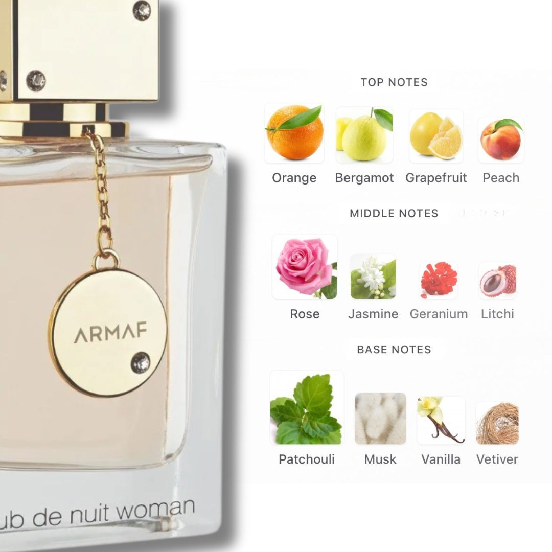 Club de Nuit Woman by Armaf is a Floral Fruity fragrance for women. Rated 4.07 out of 5 with 2,653 votes. Known for great value comparable to Chanel Coco Mademoiselle, lasts all day, and works as a perfect all-rounder for any occasion.